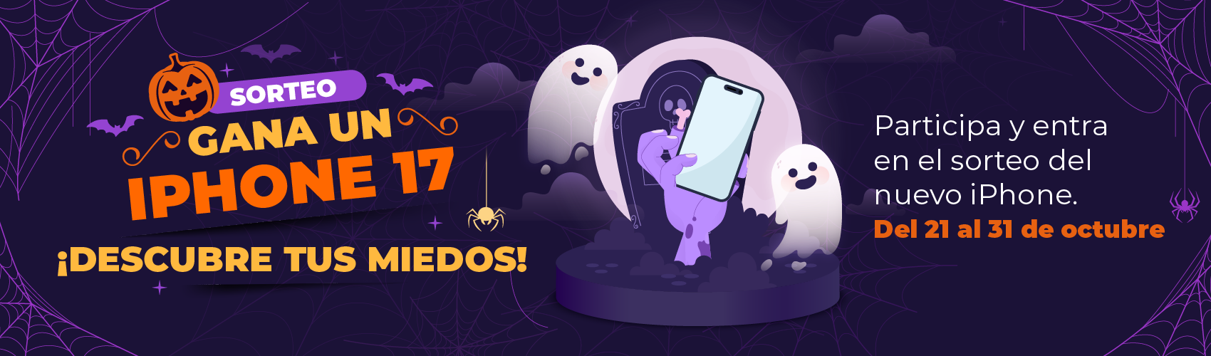 Participa en el sorteo más aterrador del año y podrás llevarte a casa un iPhone 17 valorado en 1.000€. 👻🕸️